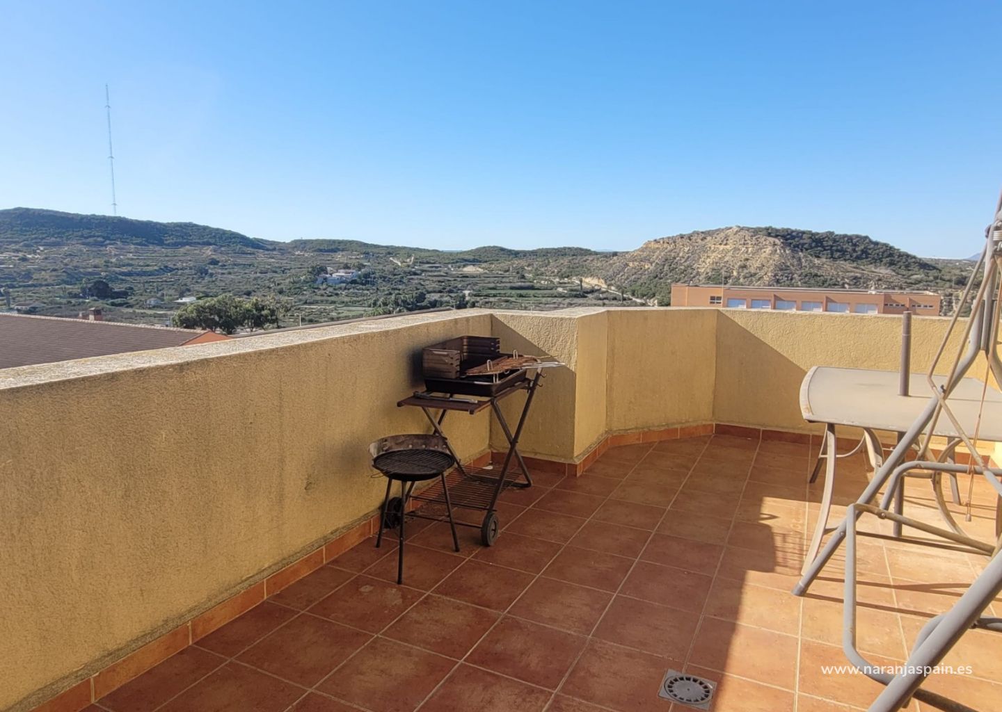 Bostaden har tre sovrum och två badrum, en välplanerad planlösning och rikligt med naturligt ljus. En av de största fördelarna är den stora terrassen med fantastisk utsikt över bergen och havet, perfekt för avkoppling året runt. Det finns även en balkong.