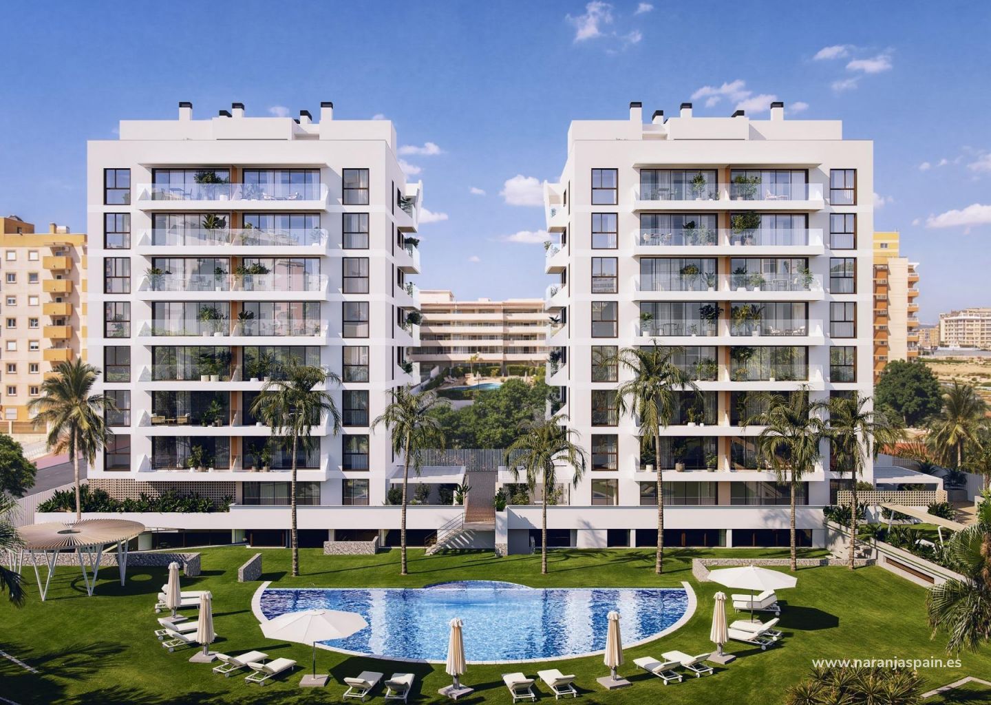 Moderna nybyggda lägenheter nära stranden och småbåtshamnen i Guardamar del Segura Exklusivt bostadsprojekt i ett förstklassigt läge vid kusten Upptäck detta exklusiva nybyggnadsprojekt i Guardamar del Segura, en av de mest attraktiva kuststäderna på Costa Blanca. Projektet består av två eleganta byggnader med 31 bostäder vardera, alla med 2 sovrum och 2 badrum (varav ett i anslutning till sovrummet), utformade i en modern medelhavsstil som förenar samtida arkitektur med den naturliga omgivningen. Bostadsområdet ligger nära Avenida del Puerto, bara 1,6 km från stranden och cirka 2 km från småbåtshamnen och stadskärnan, vilket erbjuder den perfekta balansen mellan lugn, natur och enkel tillgång till alla nödvändiga tjänster. Snygga bostäder utformade för komfort och ljus Dessa högkvalitativa lägenheter är utformade för att maximera det naturliga ljuset och utrymmet, vilket skapar ljusa och välkomnande interiörer. Bostäderna har moderna planlösningar som är perfekta för både permanent boende och semesteranvändning. Varje bostad har ett fullt utrustat kök med vitvaror, inbyggd luftkonditionering och ett energieffektivt aerotermiskt system för varmvatten. Valfria parkeringsplatser, antingen under jord eller ovan jord, samt förråd finns också tillgängliga. Enastående gemensamma utrymmen för en hälsosam livsstil Bostadsområdet erbjuder ett brett utbud av förstklassiga gemensamma faciliteter utformade för avkoppling, välbefinnande och socialt umgänge. Boende kan njuta av en stor pool för vuxna och barn omgiven av anlagda trädgårdar, samt ett spaområde med bastu och gym. Ytterligare funktioner inkluderar coworking-utrymmen, en social klubb, lekplatser för barn, yoga- och avkopplingszoner samt hälsosamma utomhusutrymmen. Bostadsområdet är helt inhägnat med videoövervakning, vilket garanterar integritet och säkerhet dygnet runt. Guardamar del Segura – en unik naturmiljö Guardamar del Segura är känt för sin exceptionella naturliga miljö, beläget vid mynningen av floden Segura. Området kombinerar över 12 km fina sandstränder med skyddade sanddyner, tallskogar och gröna parker. Detta unika landskap erbjuder en fridfull miljö samtidigt som det tillhandahåller ett komplett utbud av bekvämligheter, restauranger och fritidsaktiviteter. Utmärkta förbindelser och avstånd Stranden 1,6 km Guardamar Marina 2 km La Marquesa Golf 9 km Torrevieja 15 km Alicantes flygplats 32 km Ditt drömboende på Costa Blanca Detta bostadsområde är perfekt för dig som söker ett modernt hem nära havet, omgivet av natur och med utmärkta faciliteter. Kontakta oss idag för att få mer information eller boka en visning och säkra din nya fastighet i Guardamar del Segura.